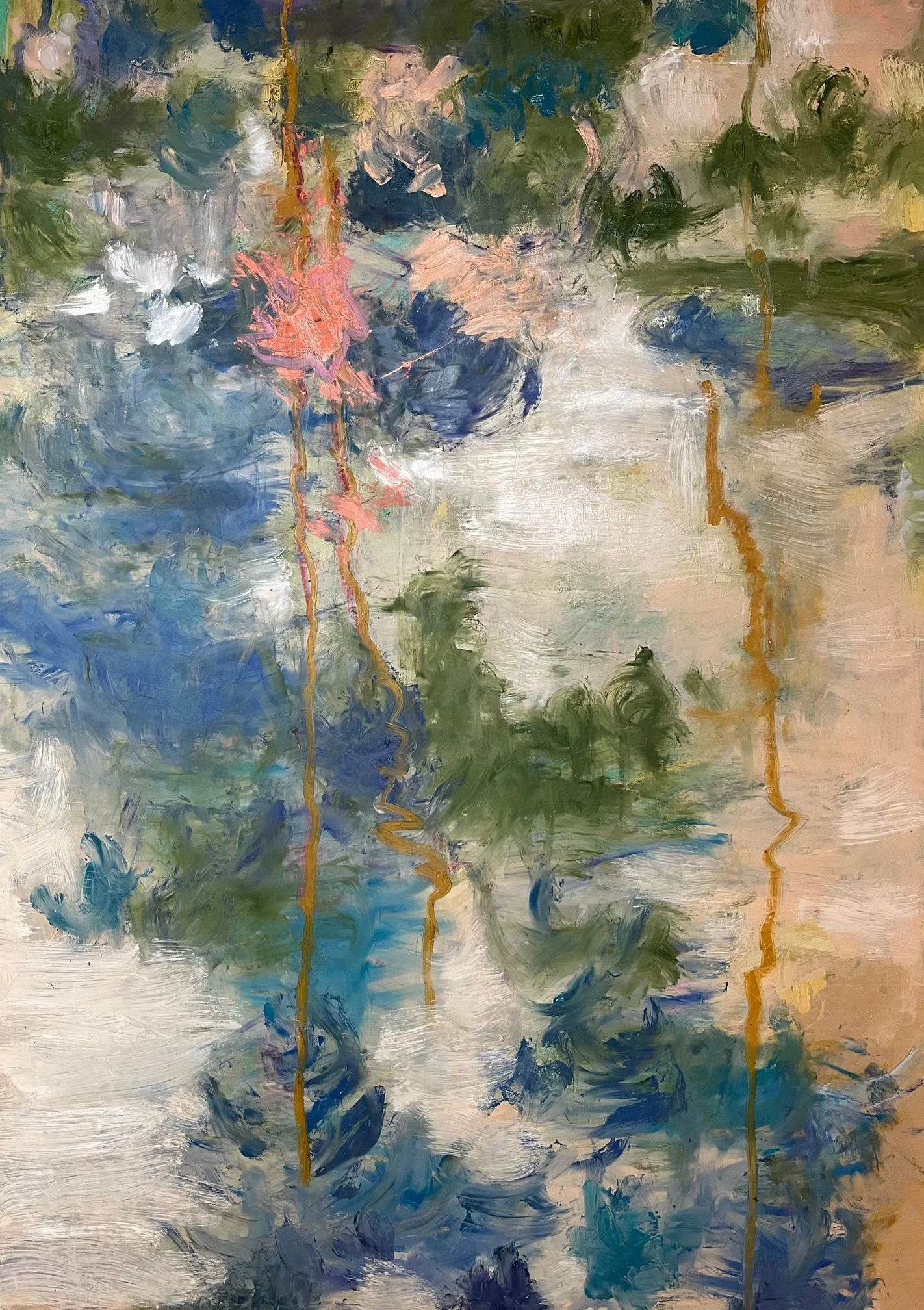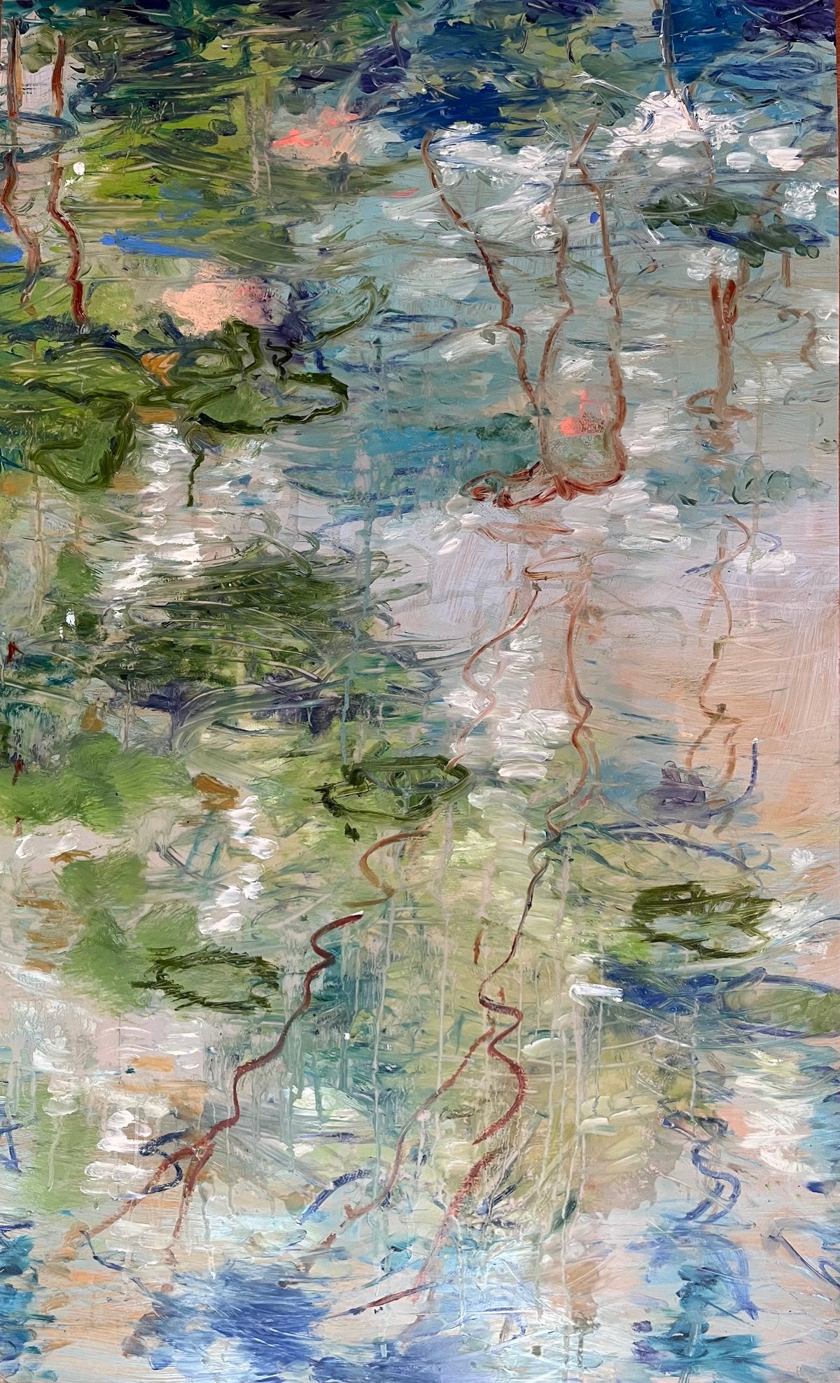 Reflecting Pool I, oil on canvas with plexiglass and LED lights, 12x36x60”